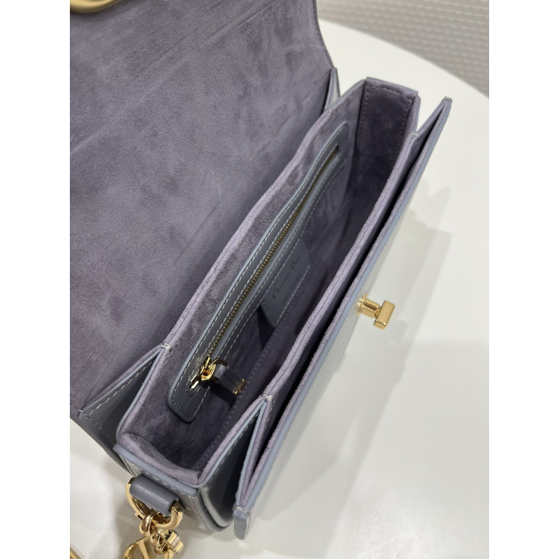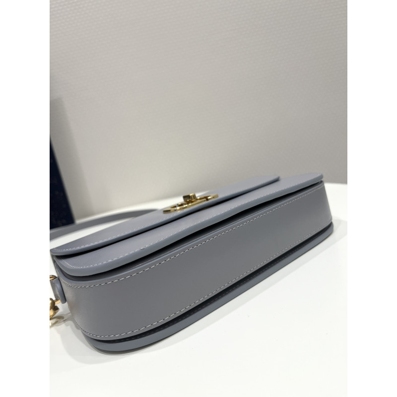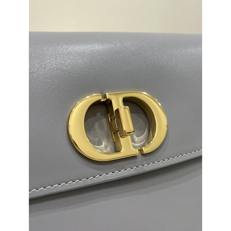 DetailRound flap crafted in calfskin with antiqued gold-plated metal CD clasp, 30 Montaigne logo embossed on the back, and a signature chain with alternating gold-finish metal and tone-on-tone enamel links to match the leather, adjustable. The bag is roomy and refined in shape and can be carried in the hand, over the shoulder or across the body.