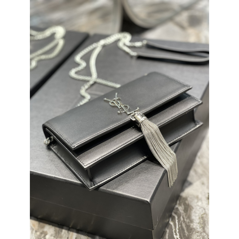 DetailTassel chain bag, detachable shoulder strap to use as a clutch, 6 card slots, 1 zipped coin pocket, 1 bill compartment. Low-key yet high-end, it can be paired with casual wear or formal occasions! Almighty!