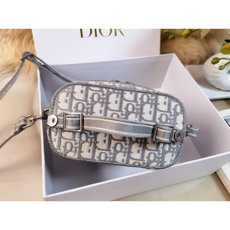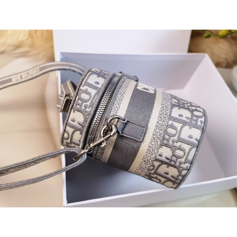 Crafted from Oblique jacquard fabric, it's embossed with the CD signature on the top and bottom. The interior is elegant and spacious with a two-way zip. The sturdy leather top handle and adjustable, detachable shoulder strap make this pouch the ideal everyday companion by hand, over the shoulder or across the body.