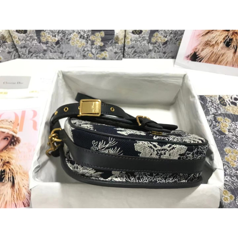 DetailEmbroidered Toile de Jouy motif and finished with antique gold-tone hardware. The detachable, adjustable shoulder strap with military buckle fits in the hand, over the shoulder or across the body.